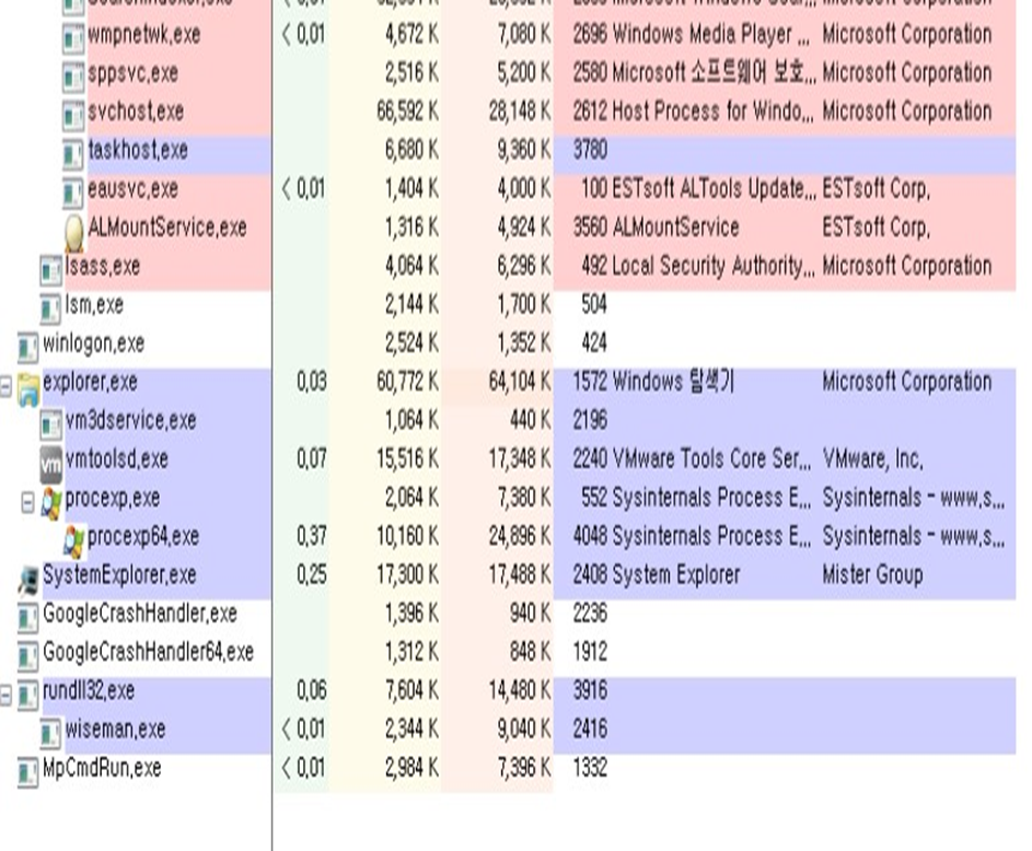 - rundll 함수를 통해 wiseman 프로그램 실행과 관련 프로세스 생성 및 Ping 명령어 등을 확인