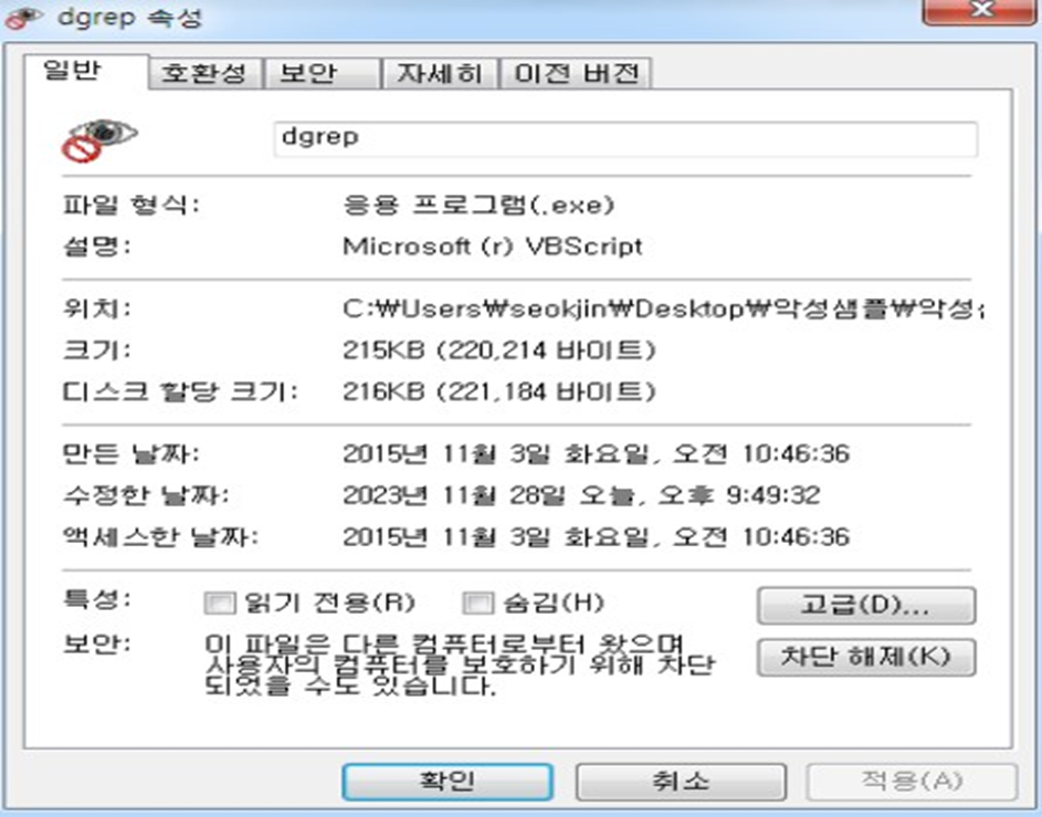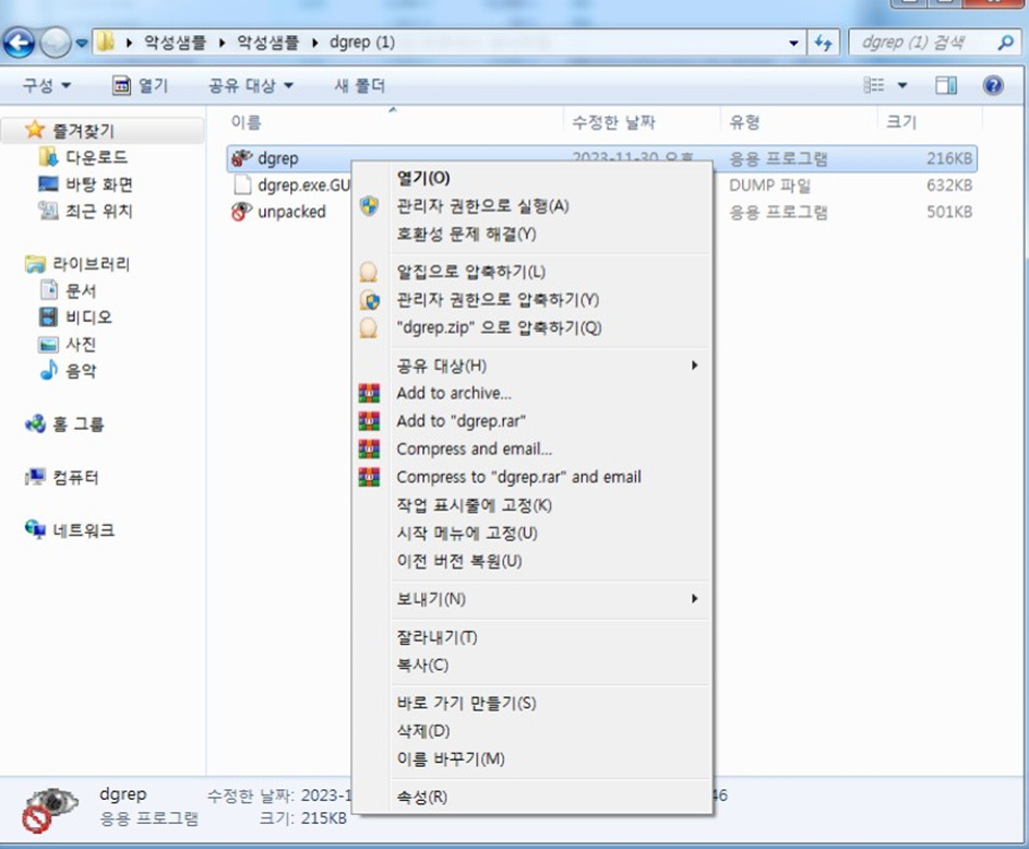 - 실행 이후 dgrep.exe 파일이 화면에서 사라지는 모습을 확인할 수 있었다
