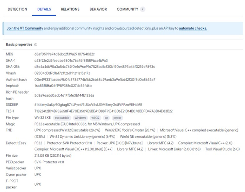 -> 해당 파일은 backdoor, trojan, downloader 계열의 악성코드일 가능성이 높고, 패킹 처리가 되어있으며 win32에서 구동될 것으로 추정할 수 있었다