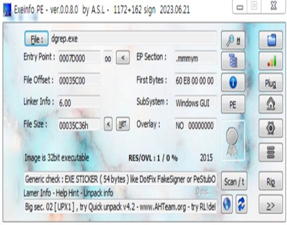 - exeinfo 툴을 통해 언패킹 유무 확인