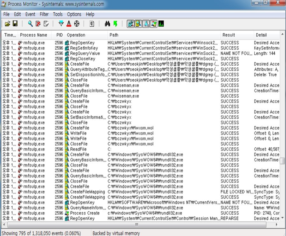 - process monitor의 filter 기능을 이용하여 더 원활하게 분석